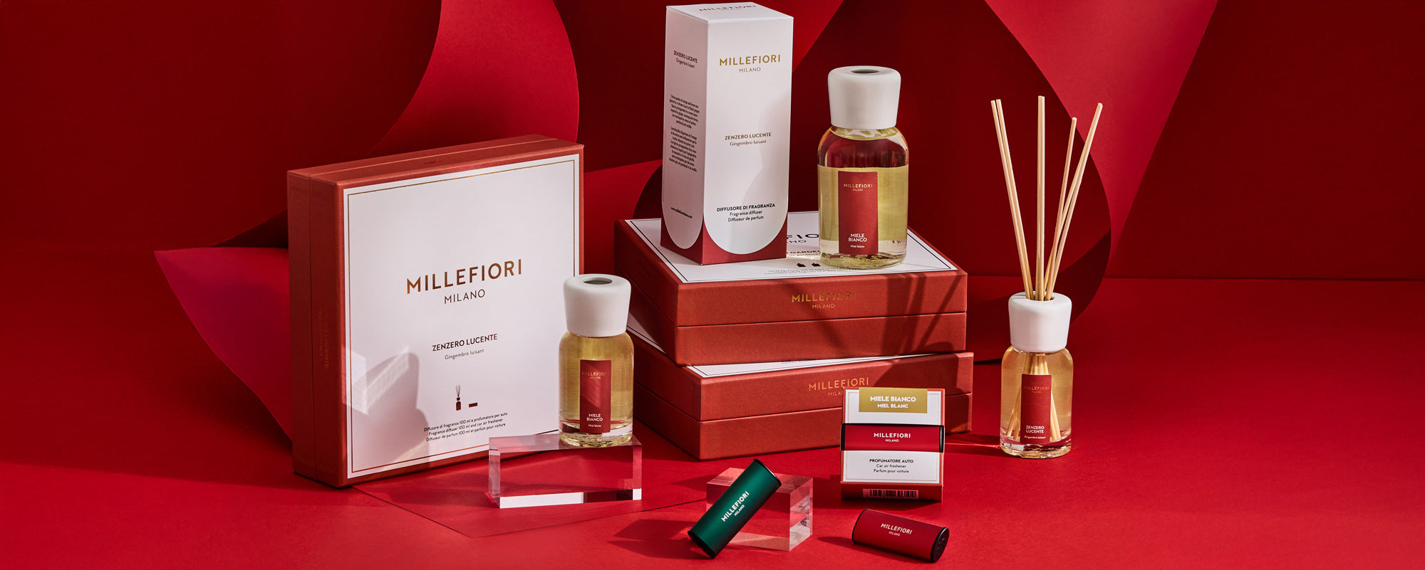 Due nuove fragranze in edizione limitata interpretano con stile l’atmosfera natalizia: Miele Bianco, dolce e avvolgente come un momento di convivialità, e Zenzero Lucente, vivace e speziata, che illumina le feste con energia e calore.