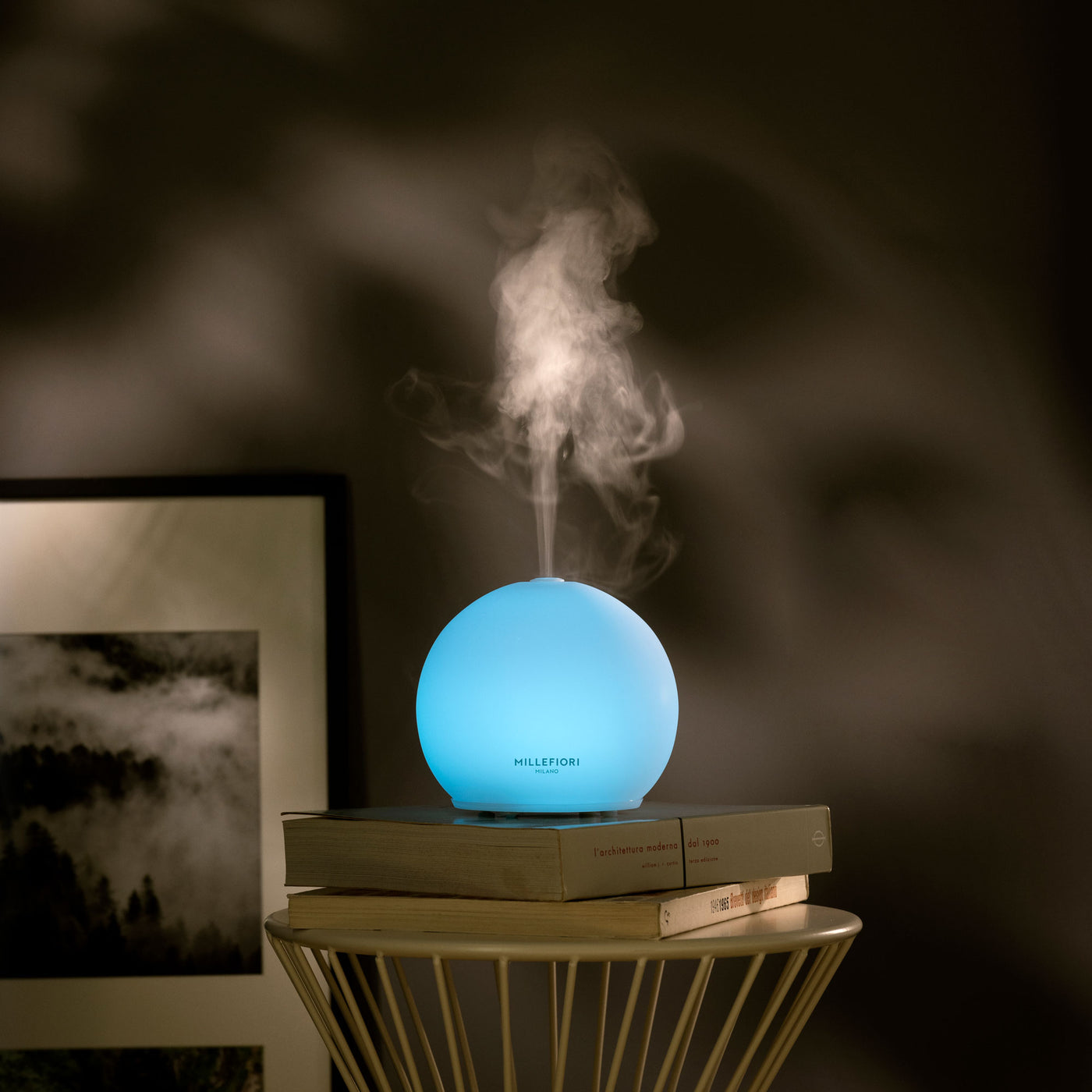 Ce diffuseur électrique allie un design essentiel et moderne, des couleurs contemporaines et une douce lumière LED pour une expérience olfactive unique.